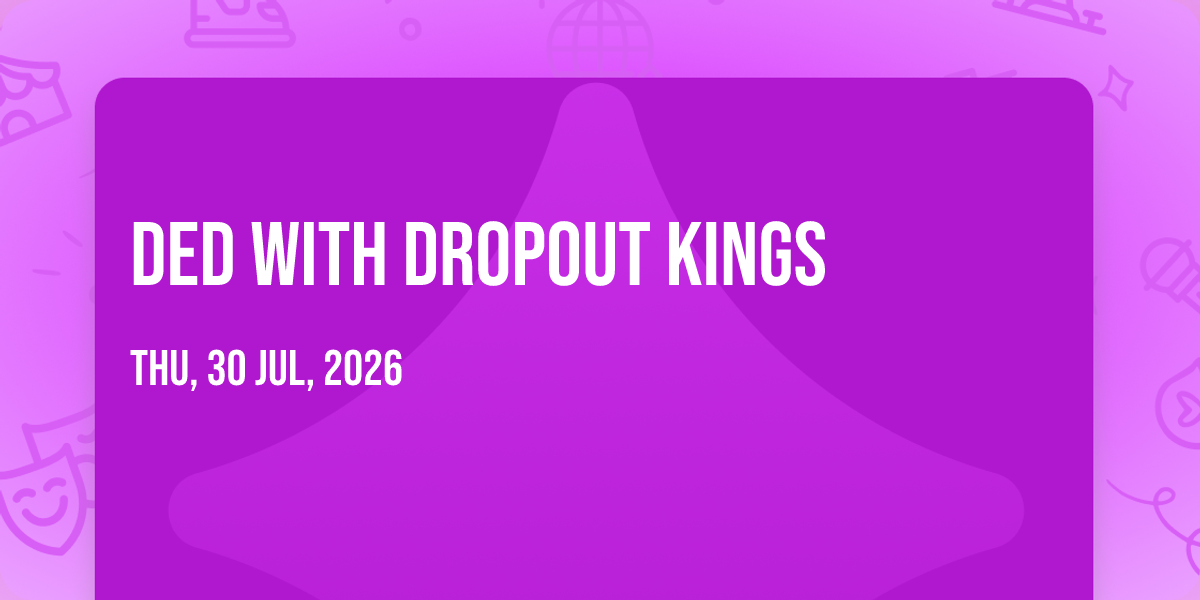 π Location: 40.3563, -75.9199π Step into a world of wonder at DED with Dropout Kings, where extraordinary moments await! ποΈ Located at Reverb - PA in dynamic Reading, PA, this event will become the talk of the town. π Join us on July 30th, 2026 at 11:00 PM for a celebration that defies the ordinary. β¨ This curated experience brings together the best of entertainment, culture, and community spirit. Every detail has been thoughtfully planned to ensure an unforgettable experience for all our guests. π― Take advantage of this opportunity to be part of something special. π Early registration is recommended as space is limited!