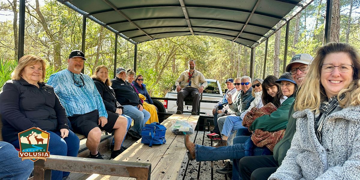 The Volusia County Explore Volusia program invites you to climb aboard the eco-buggy with soil expert David Griffis and Environmental Specialist Tommy Nordmann for a tour of Deep Creek Preserve. In addition to identifying plants and wildlife in the preserve, participants will learn how soil analysis informs decisions about land use and permitting. Participants will also discover how forests are restored and managed through various professionally accepted techniques, including prescribed burning.
