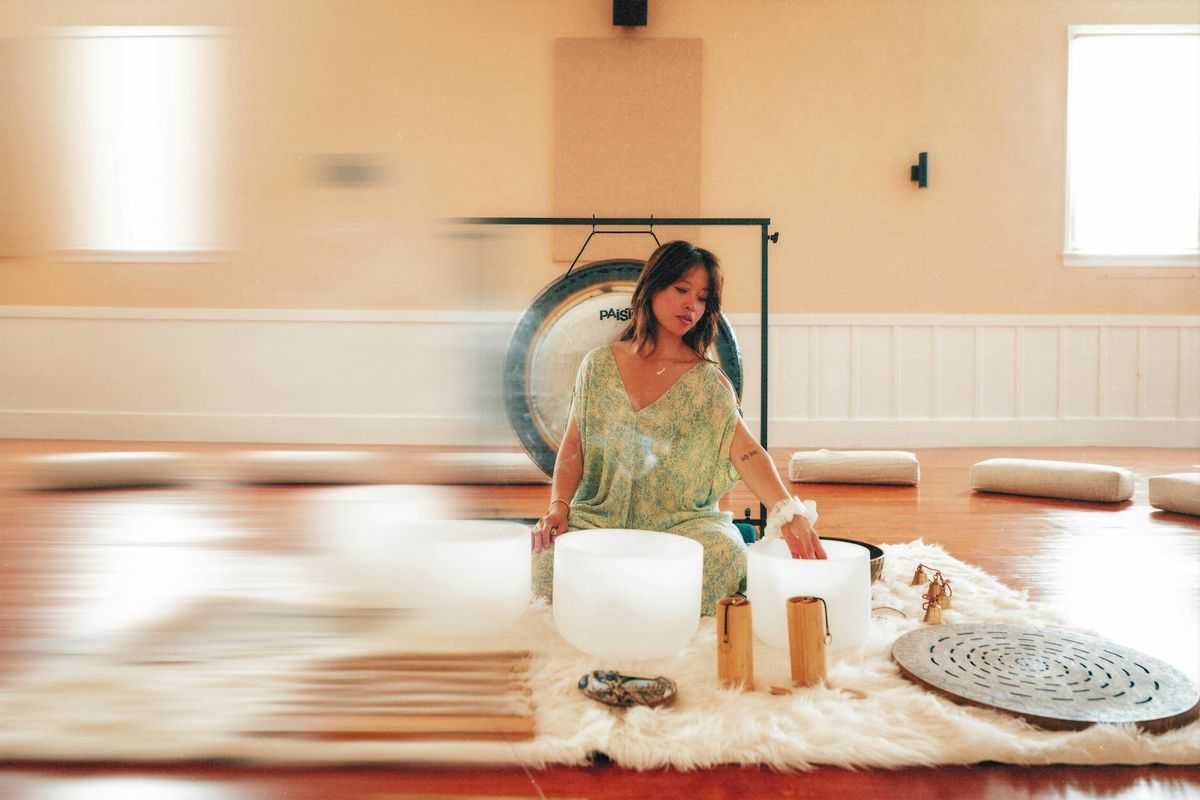 - A full-body sound journey using crystal singing bowls, chimes, and other instruments