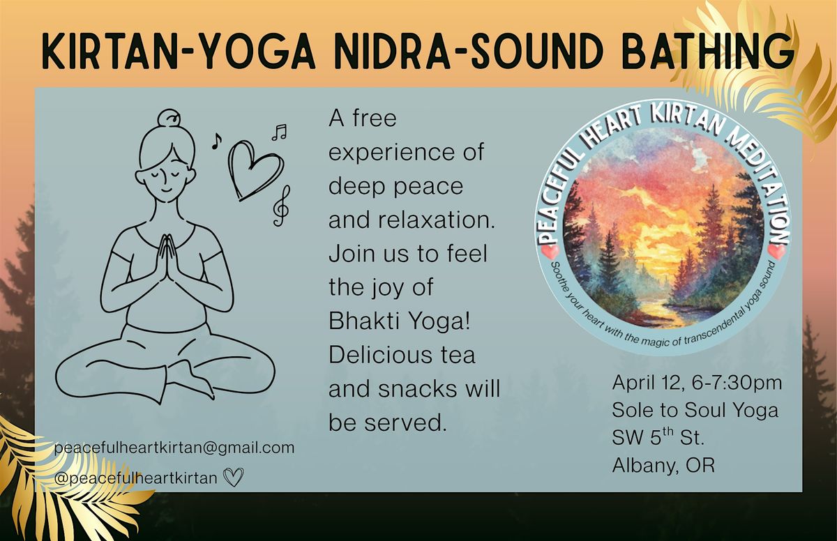 Join us for an evening of deep relaxation, yoga nidra, kirtan meditation, tea, and dessert. With a special feature for April- sound healing!