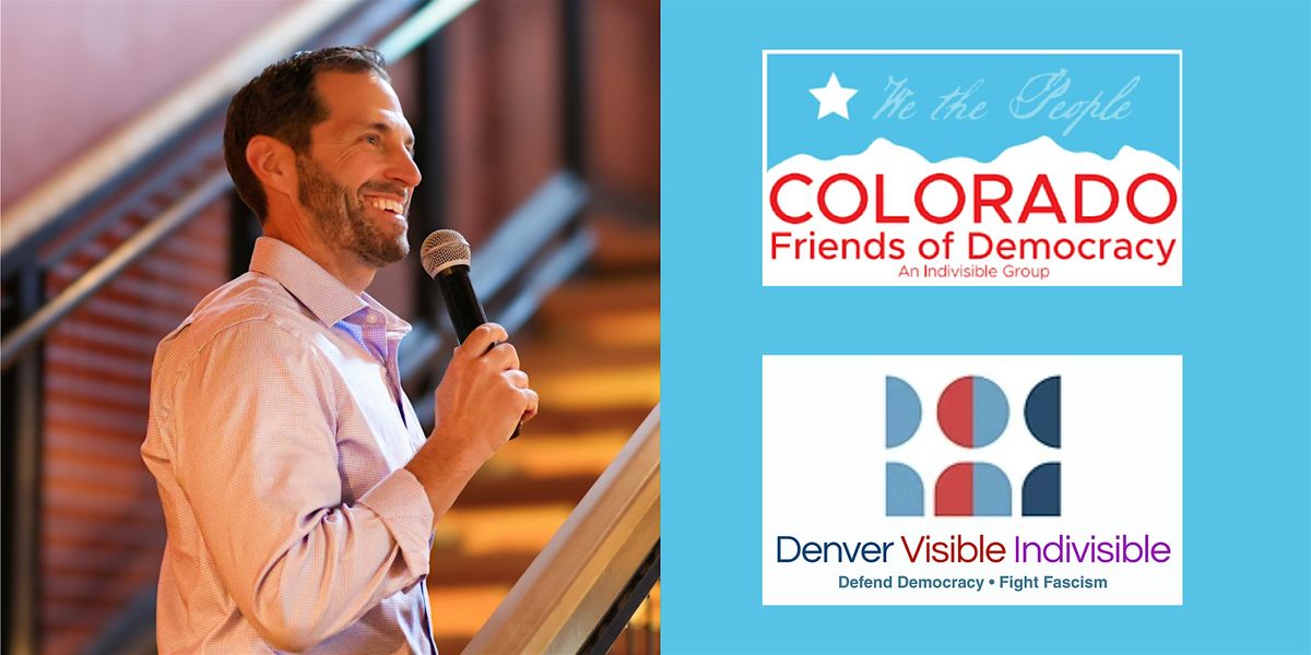 Colorado Friends of Democracy and Denver Visible Indivisible are pleased to present this free event, featuring Congressman Jason Crow, Colorado District 6. The Colorado Democratic Party recently named Jason Colorado’s “Democrat of the Year. In 2018, Jason defied the odds to beat a five-term Republican incumbent and help Democrats take back the House. He did it by running a people-powered grassroots campaign that took on special interests and refused to take a dime of corporate PAC money. Now, he’s been tasked with a new mission–leading House Democrats’ candidate recruitment to help take back the House in 2026. He will fire us up and give us our marching orders to win the midterms!