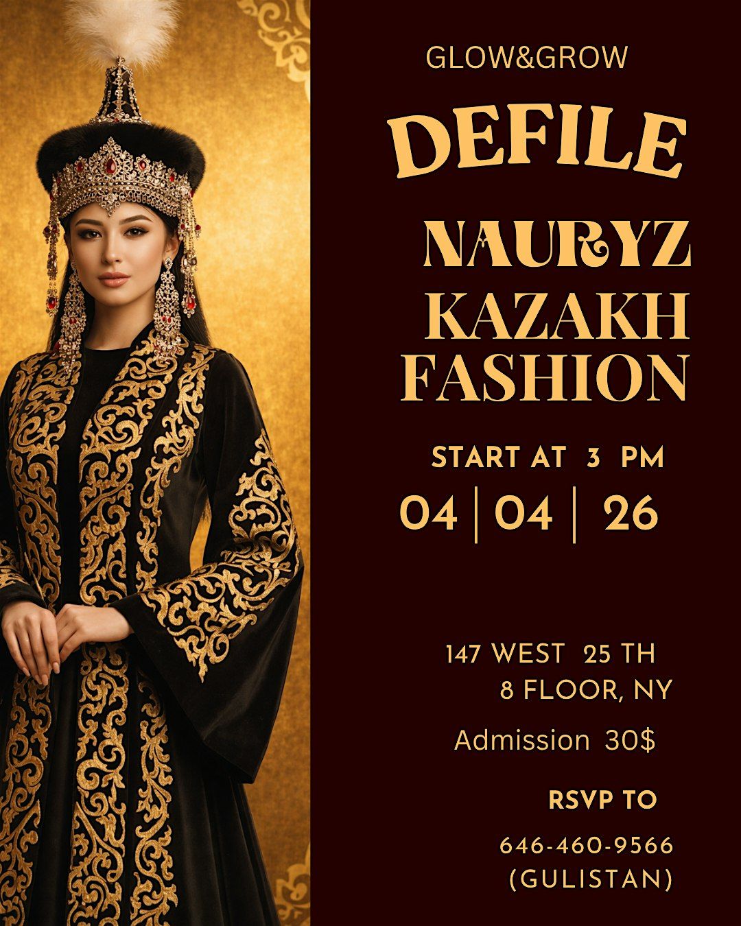 Join us for a beautiful women's Kazakh culture, fashion show and feminine elegance. Runway. Kazakh traditional custom. Tea party.About this Event