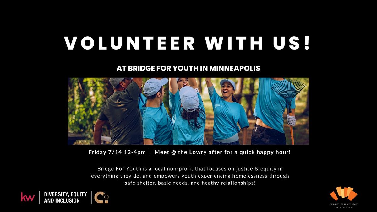 12-4PM: Volunteer @ Bridge For Youth in Minneapolis. We will be helping them paint & Organize for their shelters!