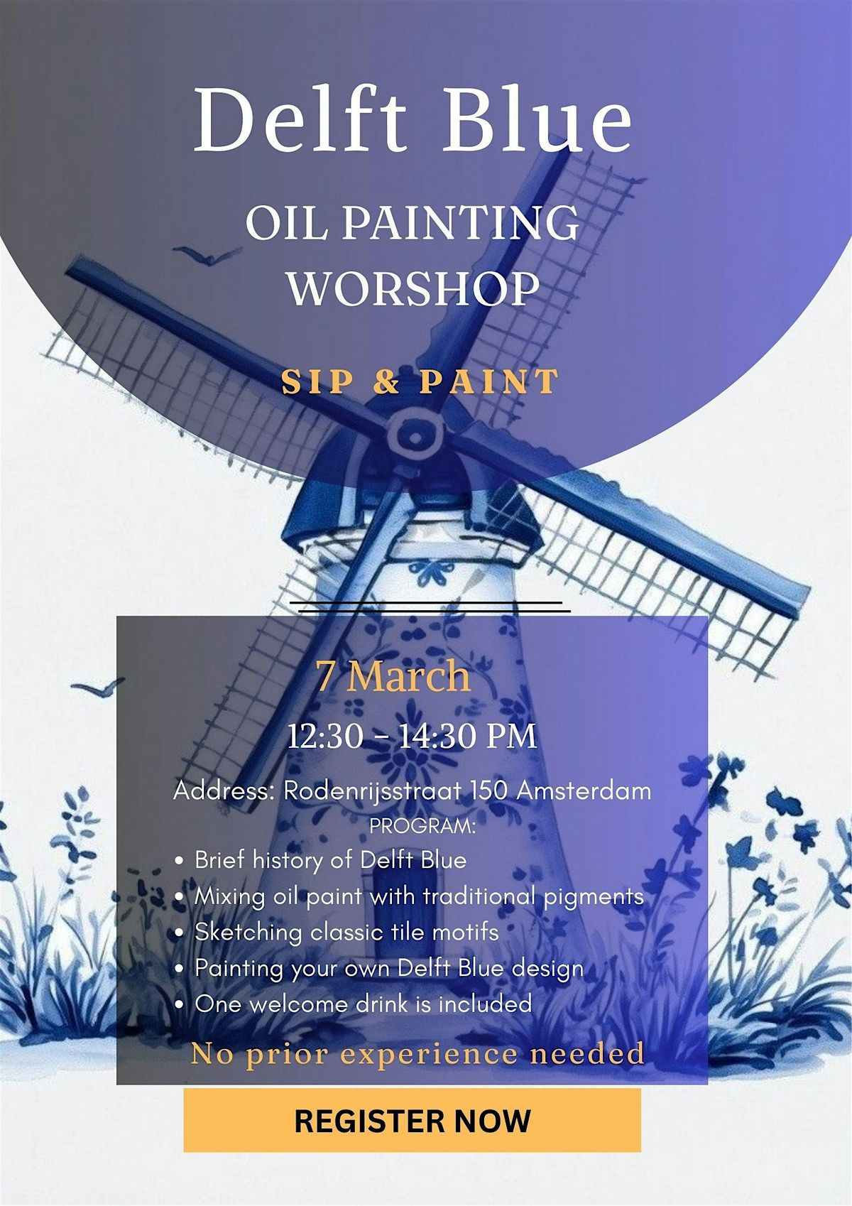 Discover the timeless beauty of Delft Blauw — the iconic blue-and-white art that has adorned Dutch tiles and ceramics since the 17th century. In this hands-on workshop, you’ll not only learn the history and secrets behind this craft but also create your own masterpiece using authentic old painting techniques.