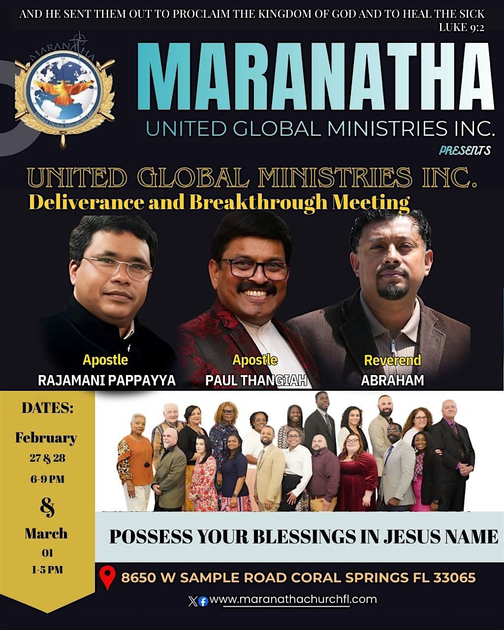 Join Us For A Powerful Deliverance And Breakthrough Meeting With Maranatha United Global Ministries Inc.