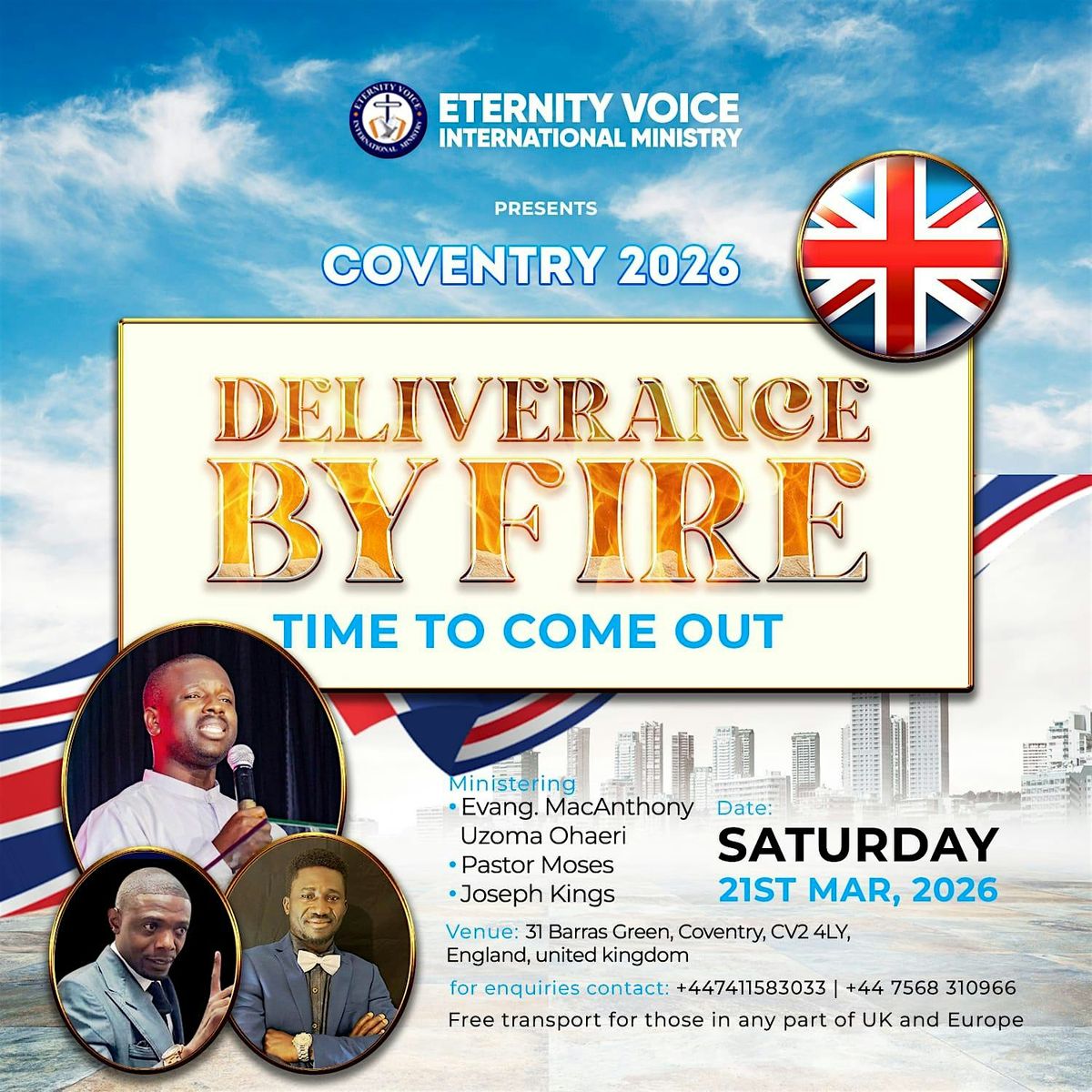 Get ready for an epic in-person experience that’s all about passion, transformation, and raw energy. Deliverance By Fire is where you’ll connect, be inspired, and ignite your spirit like never before. Don’t miss out on the chance to be part of something truly unforgettable!
