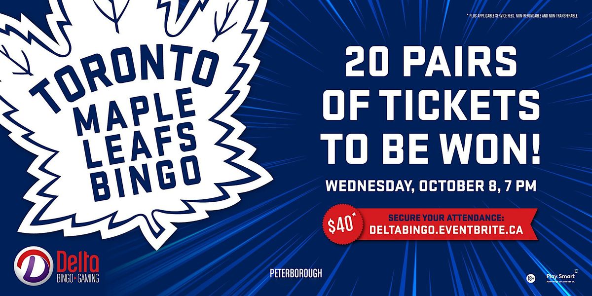 On Wednesday, October 8, Delta Bingo & Gaming in Peterborough is hosting a night packed with excitement and Blue & White pride. There are 20 pairs of tickets to an upcoming Toronto Maple Leafs game to be won — and you could be heading to Scotiabank Arena!