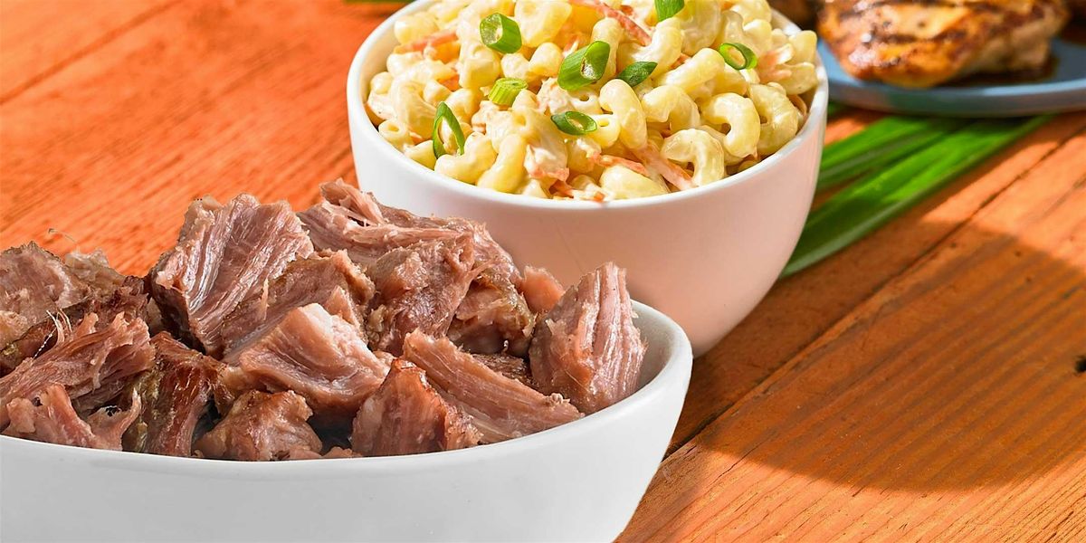 With a five hour time difference, a late lunch in Hawaii is served at the same time as an early dinner in Texas, right? In any case, we knew you'd want to try this iconic meal from the islands comprised of succulent, fall-apart-tender, pulled pork shoulder; creamy macaroni salad with a little crunch from the addition of carrots and celery; not one, but two scoops of rice; and an irresistible slice of vanilla-infused custard pie. You'll sit back, relax and discover how to make this special meal from the Aloha state as our instructors show you how to create each dish.