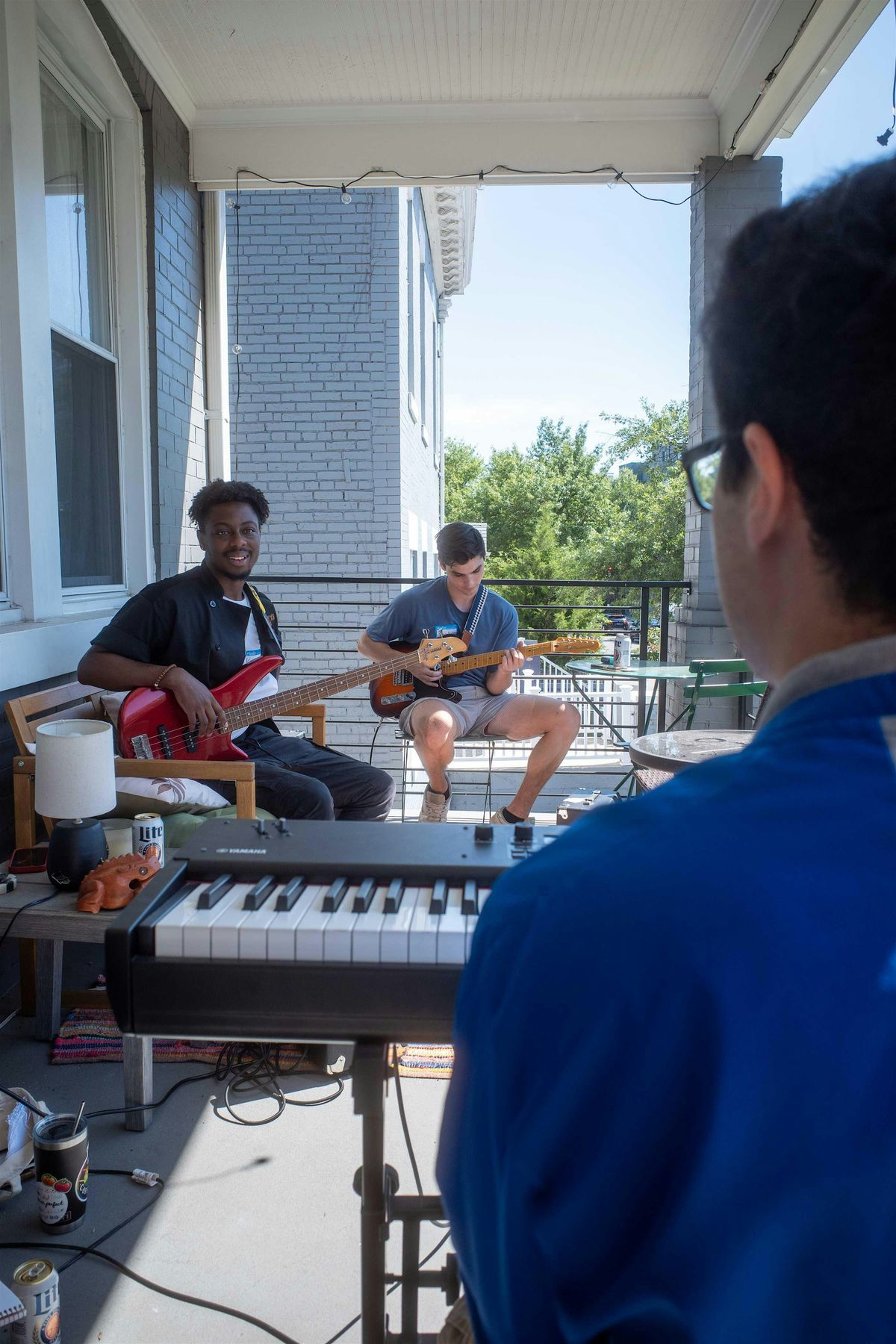 ENJOY A HOME-COOKED MEAL before the listening party where everyone listens to each other's mixed demos.
