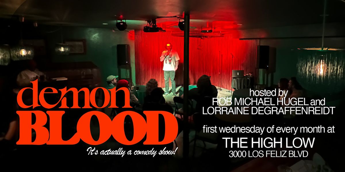 Demon Blood Comedy Show is a Donation based monthly stand up comedy showcase hosted by Lorraine DeGraffenreidt and Rob Michael Hugel occuring on the first Wednesday of each month in the Green Room at High Low Bar in Atwater Village.