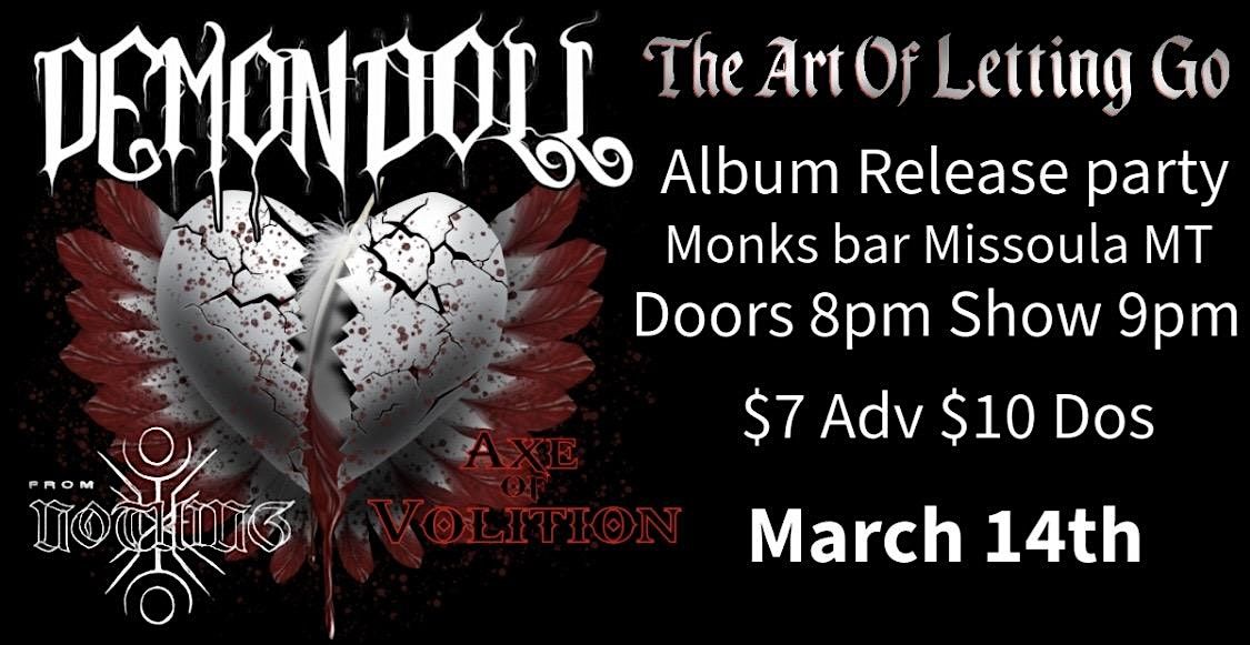 Join us 3/14/26 for Demon Doll'a Album Release for The Art Of Letting Go doors 8P music 9P 21+ adv $7 dos $10