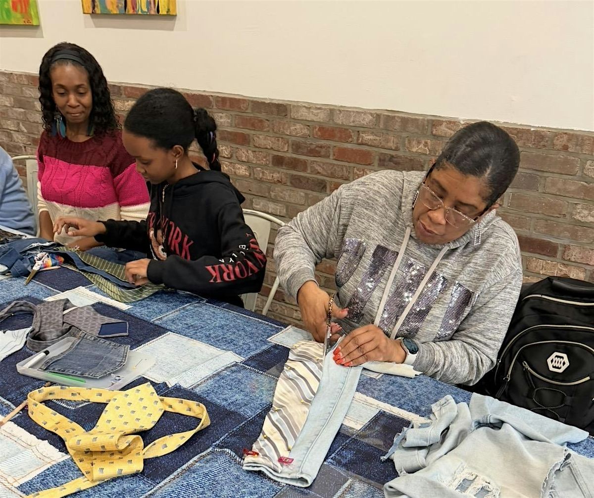 BRING your own denim treasure — jeans, jacket, skirt, whatever’s living its second life in your closet. We’ll hook you up with all the bling, trims, and hardware — you just show up with your imagination and a dash of sass. 😌🧵
