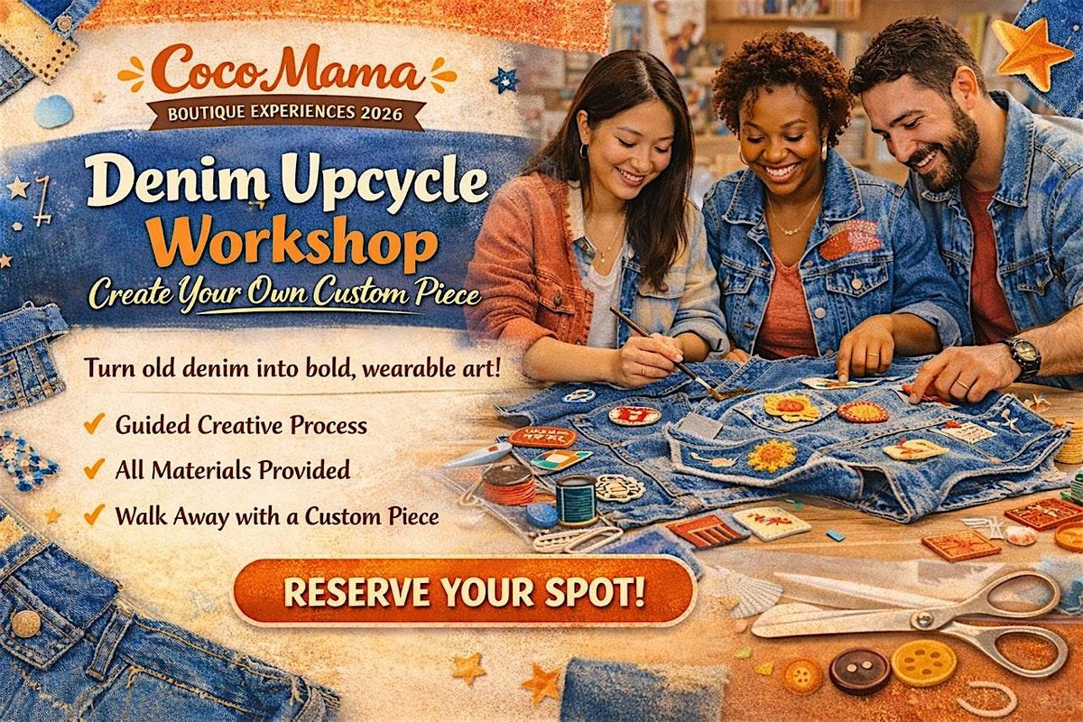 Welcome to Denim Upcycle Workshop to Create Custom Pieces at Coco Mama Boutique House! Join us on February 1, 2026 at 12:00 PM (Pacific Time) for a fun and creative session. Bring your old denim pieces and let's transform them into unique, stylish creations together and recieve a $25 gift card to spend during the experience. If you dont have a favorite piece, don't worry we got you covered. No experience needed, just enthusiasm! Get ready to unleash your inner designer and enjoy a day filled with creativity and sustainability. See you there!