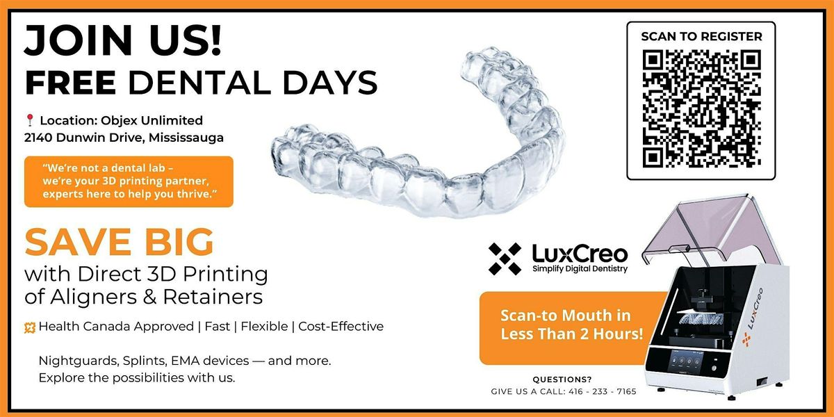 Discover how cutting-edge 3D printing technology is transforming dental labs and clinics. At this exclusive event, weâll showcase the LuxCreo 3D Dental Printer in action, printing aligners, retainers, and night guards directly â no model required.