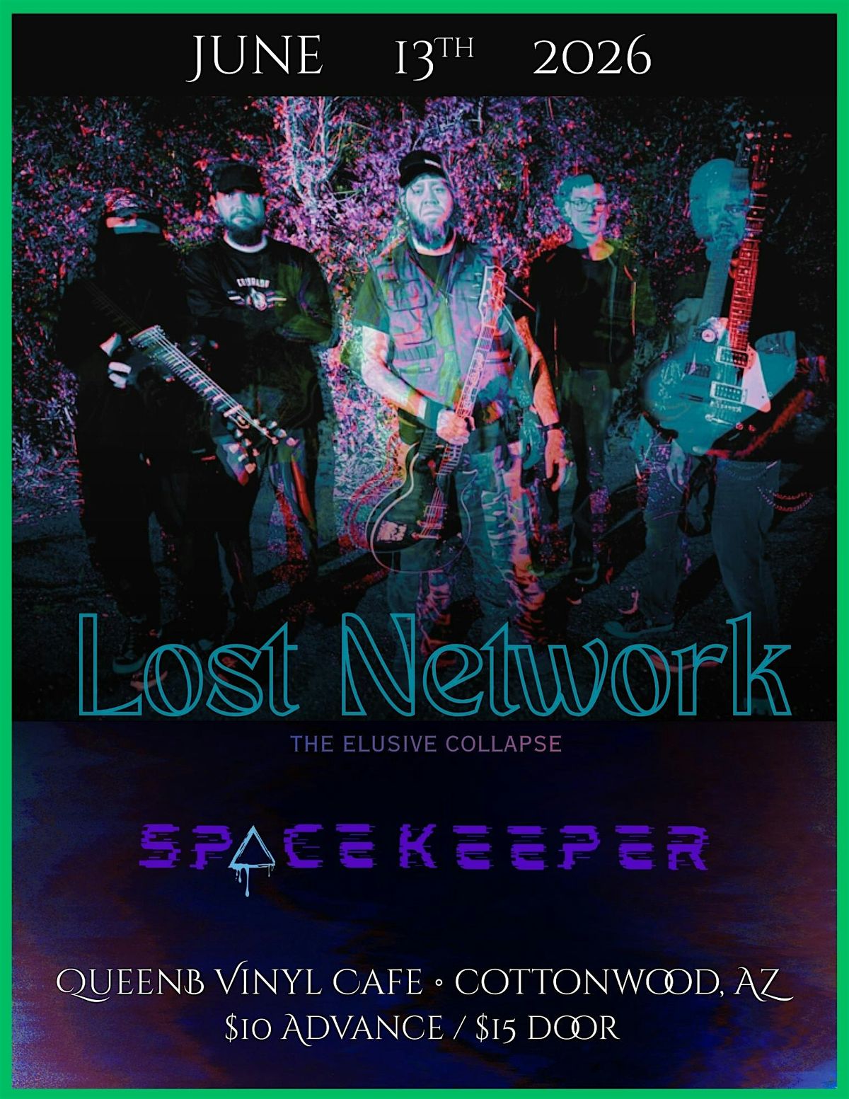 The elusive collapse extends to Cottonwood grounds... Join your Queen B favorites this June for a shadowy event. Denver-based band Lost Network brings a dark metal vibration to these hallowed walls, bringing local friend Spacekeeper to drive the grit home! Don't miss a time bending night of heavy industrial madness!
