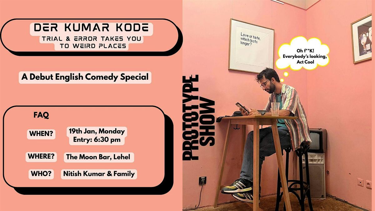 Make note of this, add it in your calanders, and get ready for an evening of standup comedy, weird theories, and improv experimentation at Der Kumar Kode, a hilarious, weird, and deeply experimental solo special!