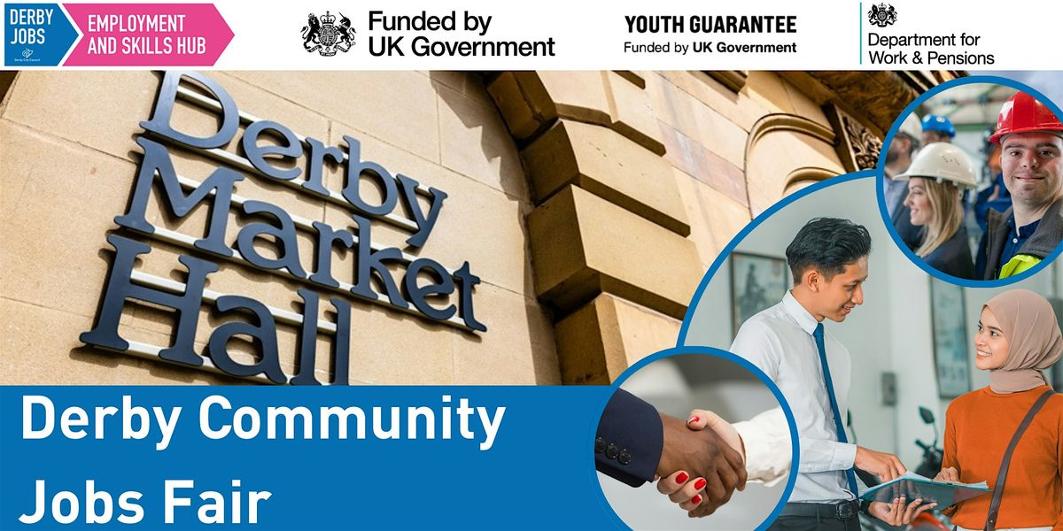 Derby City Council, in partnership with the DWP and Derby Market Hall, invites you to the Derby Community Jobs Fair on Wednesday 25 February, 10:00am – 2:00pm!