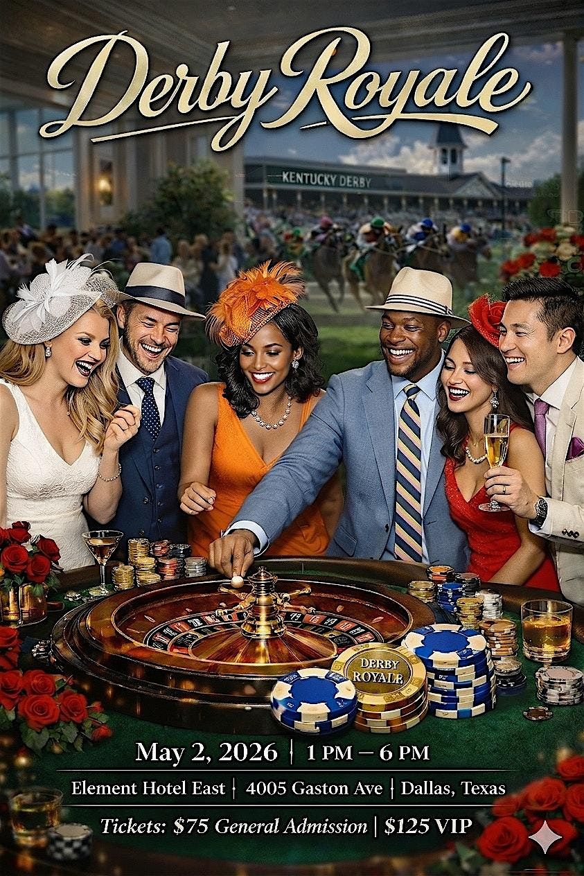 Derby Royale: Luxury day party with casino vibes, fashion, and live race energy. May 2 | Dallas. Tickets from $75. VIP available.About this Event