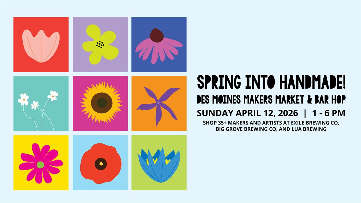 Spring is just around the corner, and there’s no better way to celebrate than shopping local! Join us in downtown Des Moines for a Spring Into Handmade market featuring 30 talented makers, great drinks, and a fun afternoon hopping between some of the city’s favorite spots, with a drink in hand if you choose.