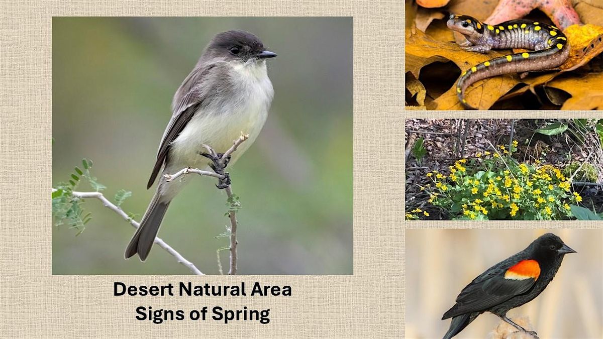 March is a great time to hear spring peepers, spot salamanders, glimpse the first spring wildflowers and hear birds returning to their nesting grounds. On this hike, we'll look for early signs of life and Spring's arrival at the Desert Natural Area.