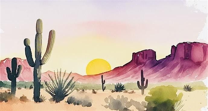 Join us for a four-week series of watercolor classes covering desert landscape scenes, each class being independent of the others and completing a vibrant desert themed painting. We will cover wet-on-wet sky blending, layering warm desert hues, & capturing light & shadows each week.