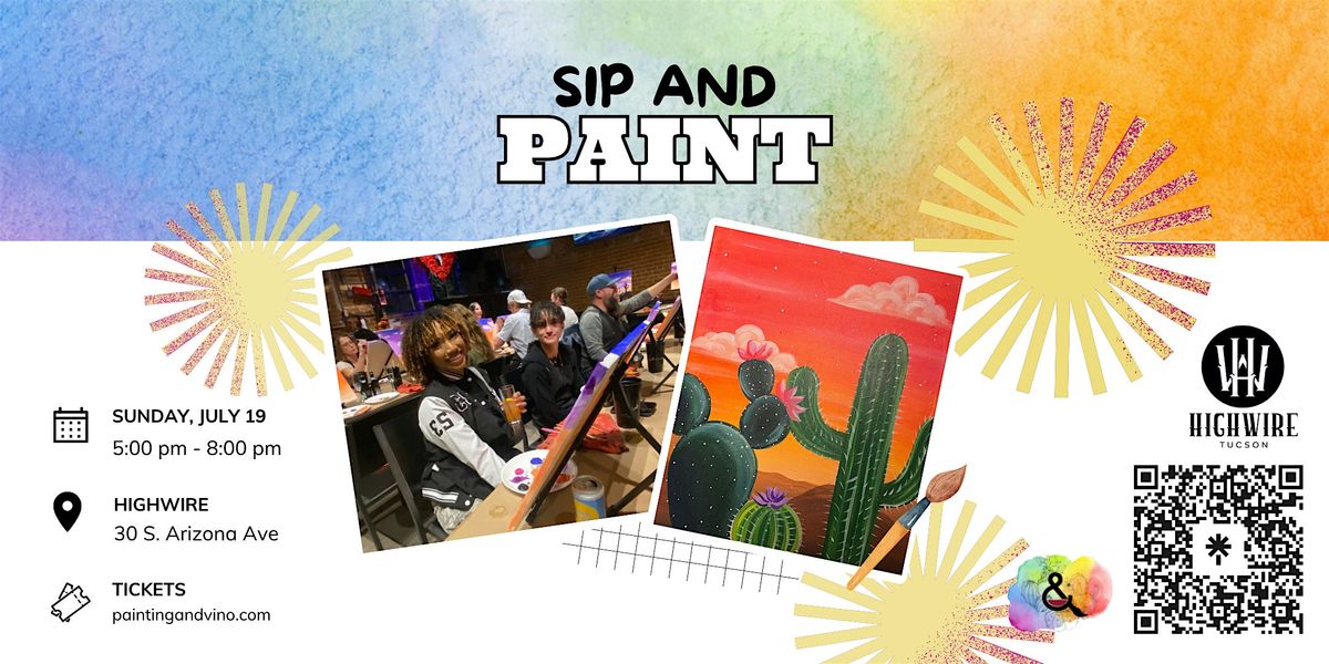Join us for drinks, art and vibes at HighWire Tucson! Get ready for a creative, fun-filled day of painting and socializing at this Desert Vibes sip and paint! Whether you’re an experienced artist or just looking for a memorable experience, this paint and sip promises an approachable, artistic activity for friends, family and couples.