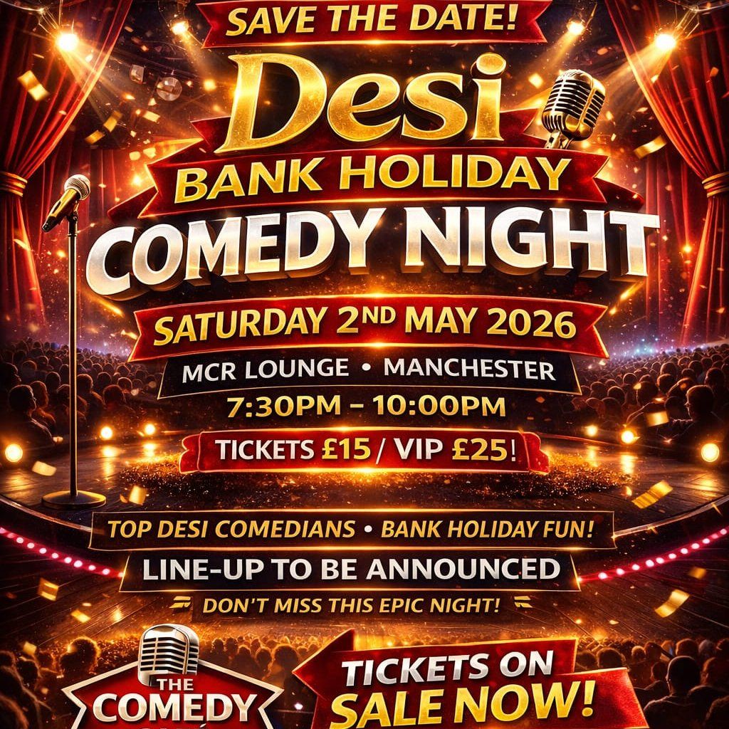 Bank Holiday Desi Comedy Night at MCR Lounge ManchesterLive stand-up (all acts in English) + FREE afterparty included