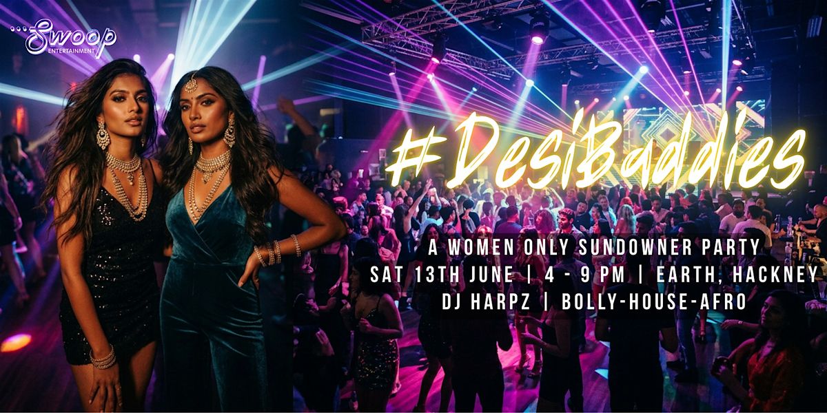 #DesiBaddies is a women-only sundowner party in London, designed to celebrate girlhood, freedom, and unapologetic self-expression. Taking over EartH Hackney, this high-energy day party brings together a powerful mix of Bollywood, South Asian beats, Hip Hop, Bhangra, House, and Afro sounds - curated for women who just want to feel good, look good, and dance freely.
