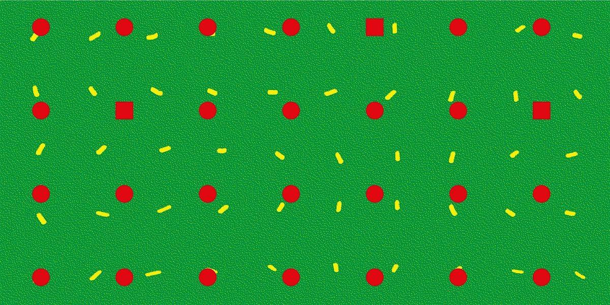 La stessa idea la ritroviamo anche nella carta da parati prodotta da Jannelli&Volpi che ricoprirà le pareti dello spazio espositivo, riprendendo il motivo della piastrella in ceramica Tuttotondo progettata da Munari per Gabbianelli nel 1982. In questa opera il cerchio e quadrato — elementi distintivi delle copertine di I Satelliti e Nuovo Politecnico — si combinano in una griglia 5 × 5, creando un equilibrio instabile tra ordine e variazione.