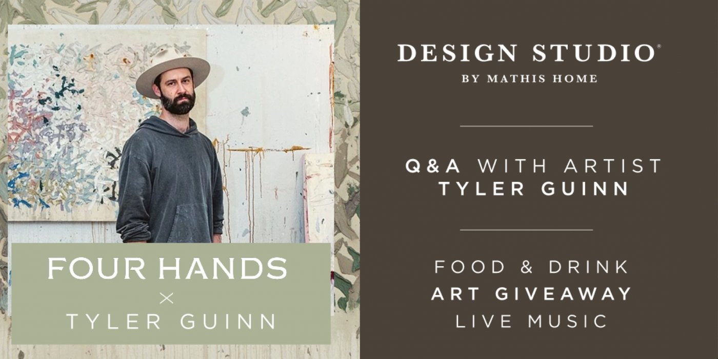 Celebrate Four Hands at the Design Studio by Mathis Home with food, drinks, giveaways, live music, and live painting by Tyler Guinn.