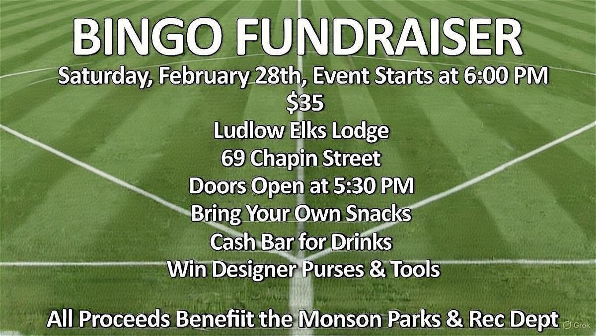 We can't wait for a night of fun for a good cause! The Granite Valley Gunners Sports Association LTD is hosting a designer purse and power tool bingo. All proceeds go to the Monson Parks and Recreation Department. You will get one bingo card per round with your admission. Additional bingo cards will be available for purchase the night of the event if you want to increase your chances of winning! A cash bar is available (the venue does not allow outside drinks), please bring your own snacks to enjoy during the games. We appreciate your support and can't wait to see you for an evening of fun!
