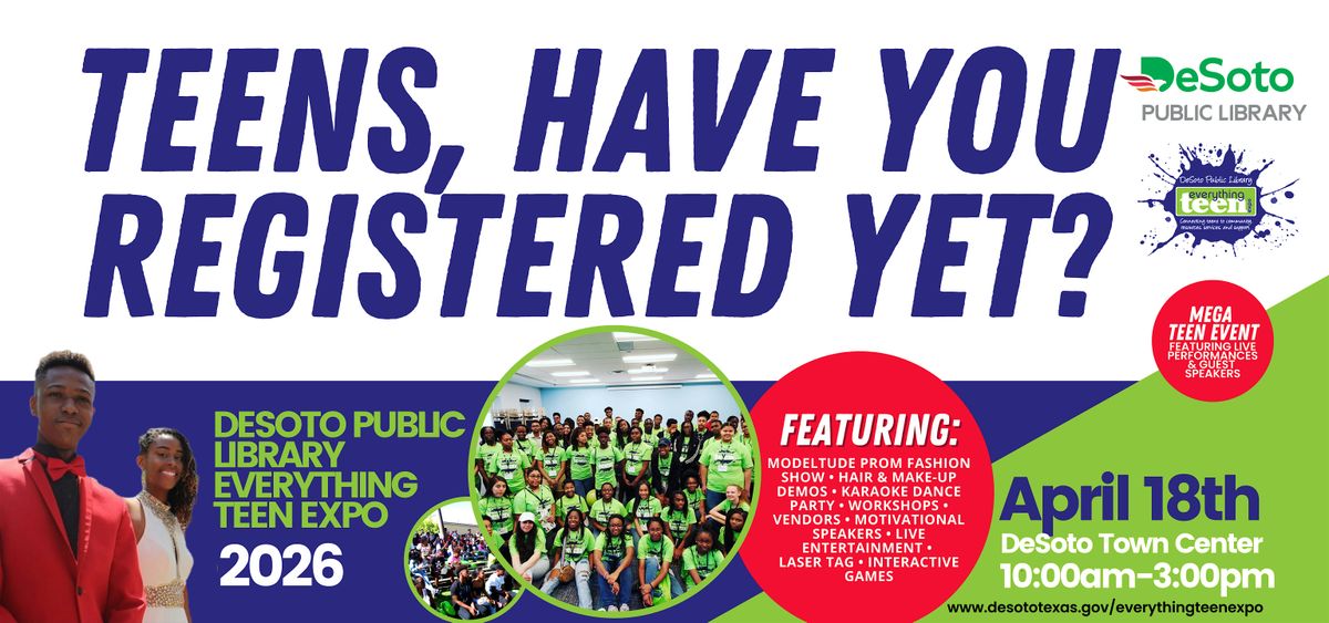 The Everything Teen Expo is the DeSoto Public Library’s signature MEGA teen event—bringing together teens, families, and the entire Best Southwest community for a high‑energy day of resources, inspiration, and fun. This event is driven and shaped by teens. The goal is simple: connect teens with the people, opportunities, and support systems that help them grow, dream, and succeed.