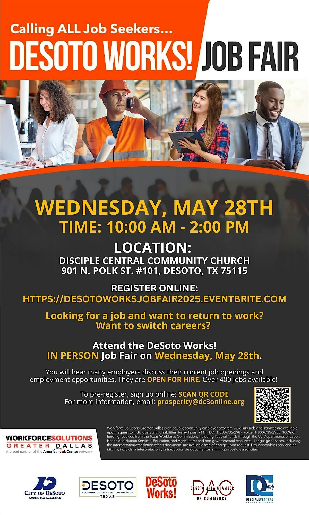 Join us for our annual DeSoto Works Job Fair hosting employers from various industries with multiple jobs to fill.About this Event