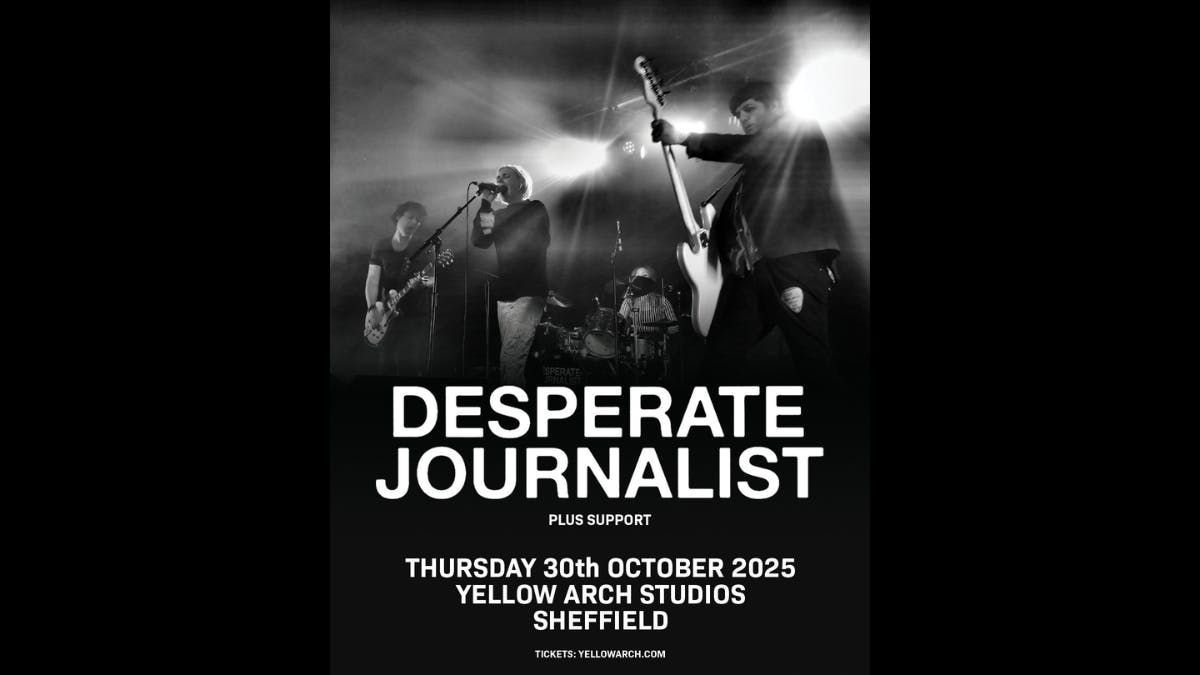 Desperate Journalist formed in North London in 2013. Their self released 'Cristina' EP and energetic live shows soon caught the attention of Simon Williams who promptly signed them to Fierce Panda records. Over a decade and 5 albums later, the post-punk foursome (Jo, Rob, Simon and Caz) have built a growing and loyal fanbase around the UK and Europe. Following on from the success of 'Maximum Sorrow!', the band played their biggest shows to date, supporting Suede on their sell out Autofiction tour. 5th album 'No Hero' arrived in late 2024 and contained their most ambitious and accessible material to date, from the bass groove led single 'Unsympathetic Parts 1 & 2', to the big choruses of '7'.Disclaimer: