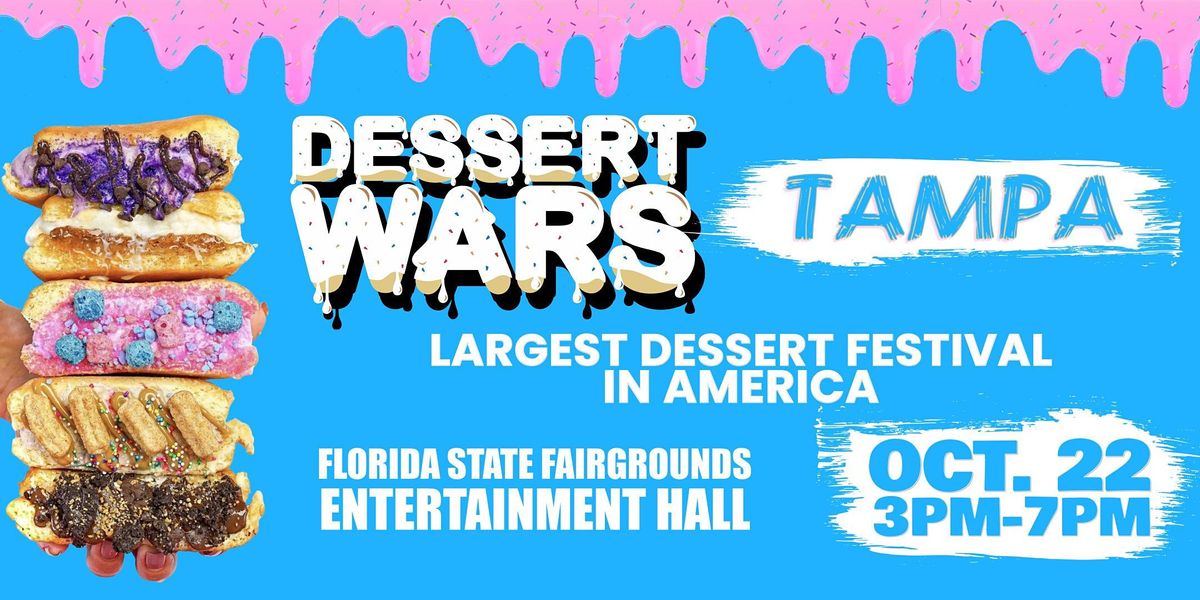 Dessert Wars Tampa will take place inside Entertainment Hall at the Florida State Fairgrounds on October 22, 2022 from 3PM-7PM.