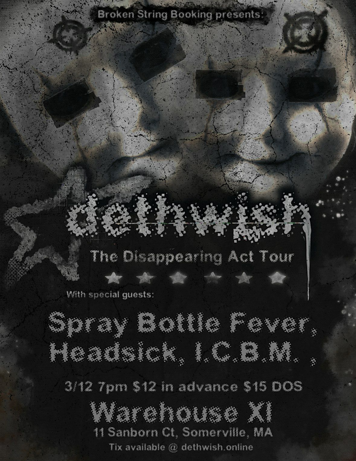 DETHWISH 'THE DISSAPEARING ACT TOUR': Thursday March 12th, 2026 7PM @ Warehouse XI (Somerville, MA) (Broken String Booking)About this Event