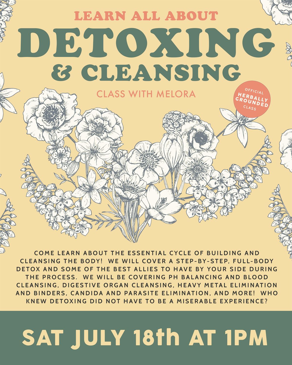 Welcome to our Detoxing & Cleansing - Class at Herbally Grounded! Join us on Sat July 18th at 1:00 PM for an afternoon of learning. This in-person event will guide you through the process of detoxing and cleansing your body to promote overall wellness and vitality.