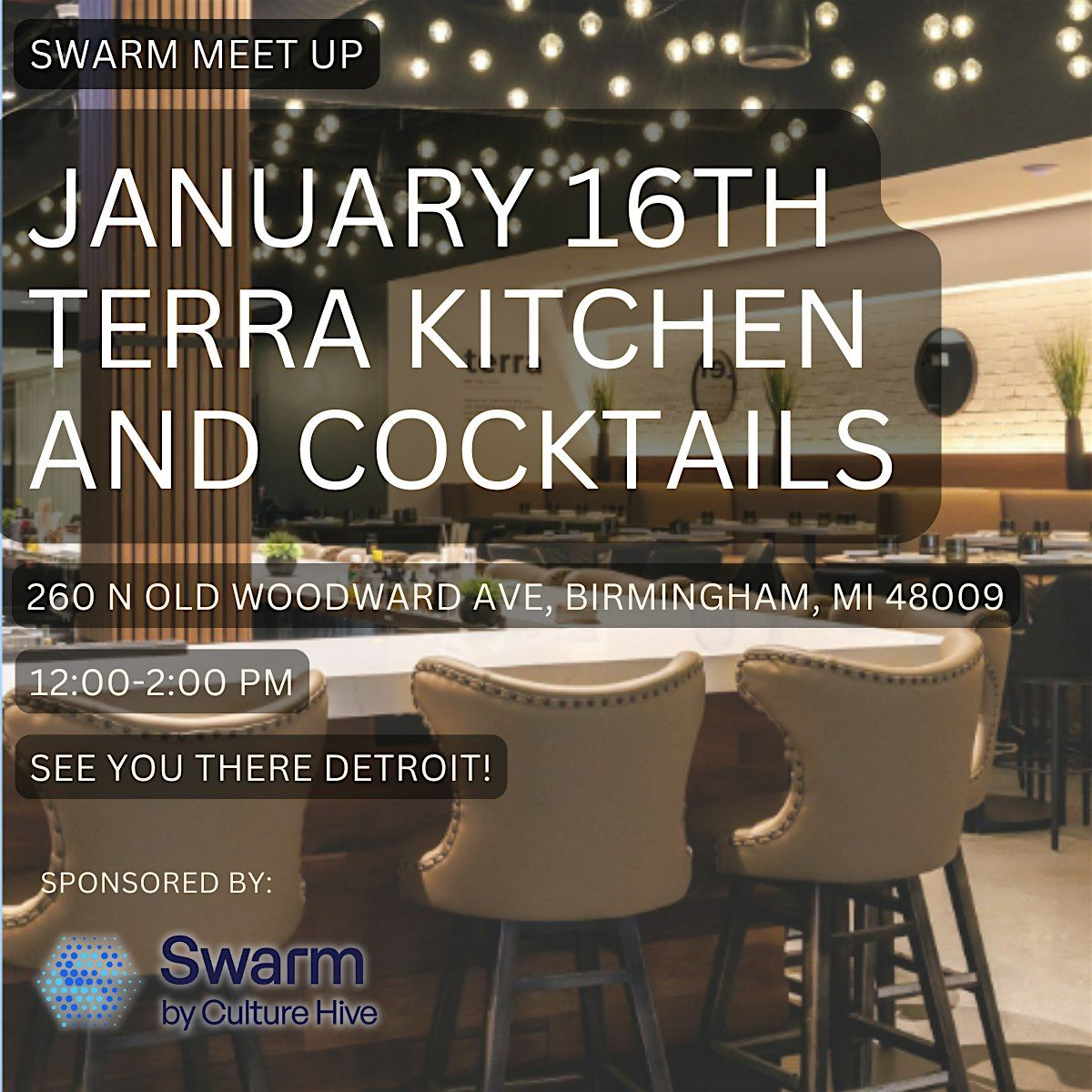 We’re excited to host Detroit SWARM meetup at Terra Kitchen & Cocktails on January 16.