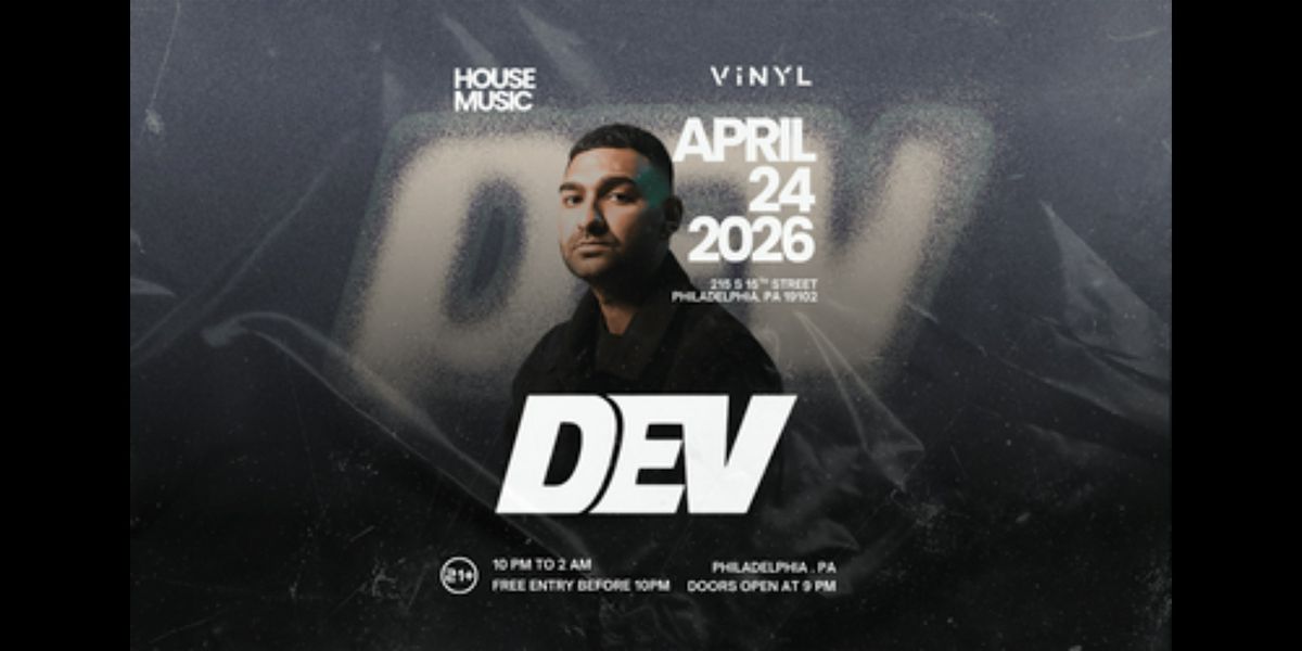 DEV, a prominent Philadelphia-based house music DJ and producer, takes over Vinyl on April 24 for a night built for the dance floor.