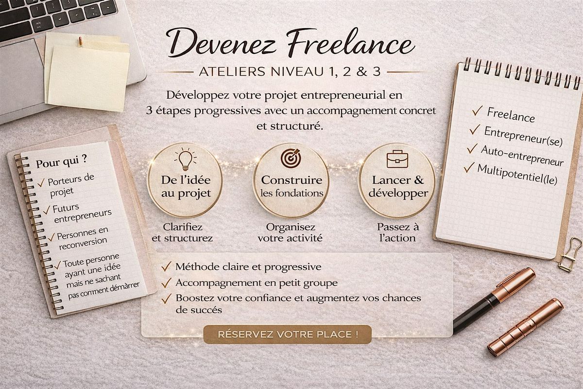 Ce parcours existe en 3 ateliers progressifs indépendant, libre à vous de tous les choisir ou de prendre celui qui correspond à vos attentes ou à votre niveau de projet , il vous permet de passer de l’idée à la création en évitant les erreurs courantes et en bénéficiant d’un accompagnement structuré. Quel choix en partenariat, en fournisseur ou trouver sa clientèle, ou exercer ?