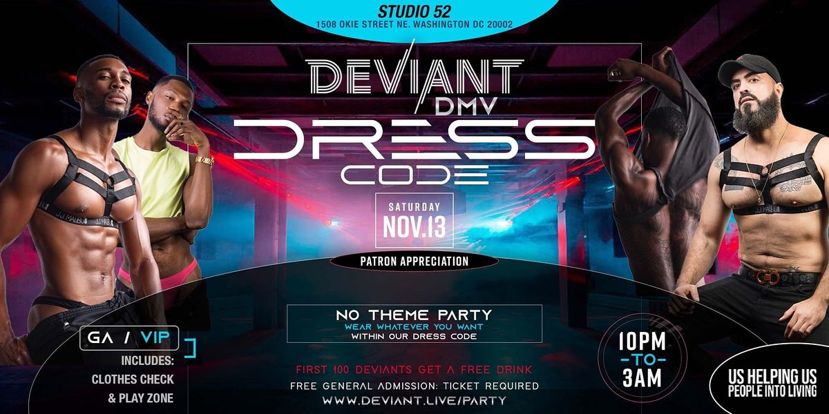 You asked. We listened. Deviant DC hosts our first party with NO THEME, as requested via surveys. DJ Tryfe on the 1s and 2s!