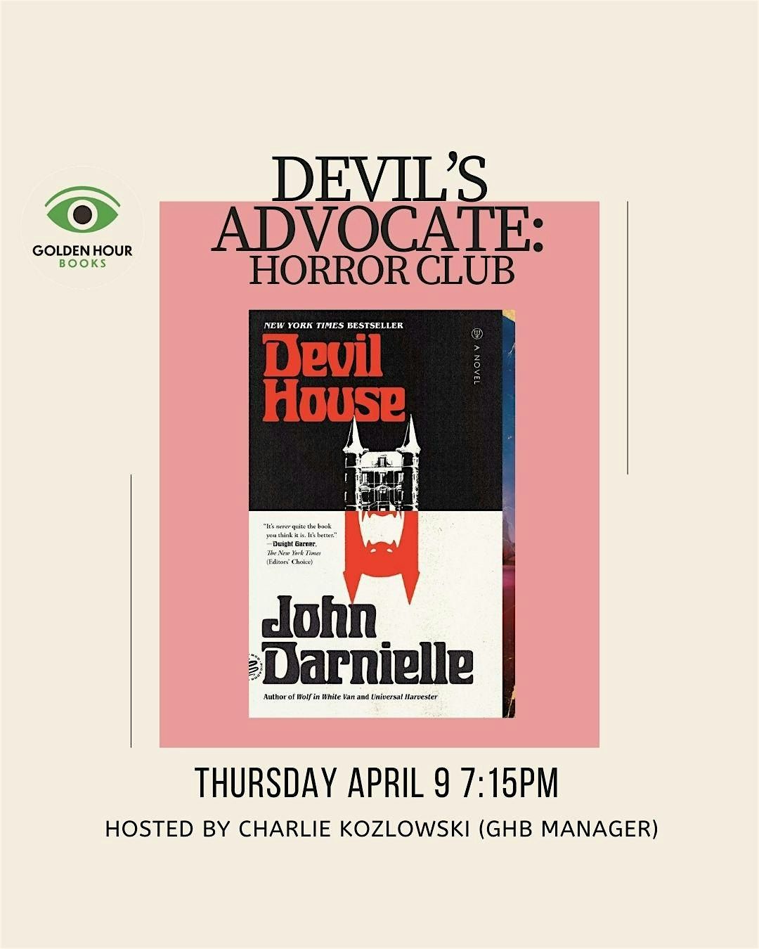 Join us for this month's meeting of the Devil's Advocate: Horror Book Club at Golden Hour Books.