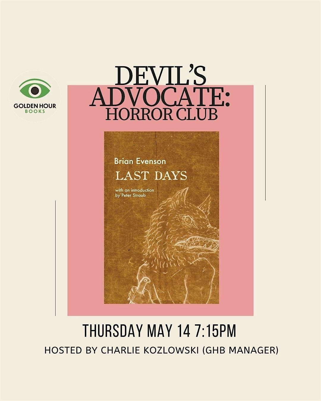 Join us for this month's meeting of the Devil's Advocate: Horror Book Club at Golden Hour Books.
