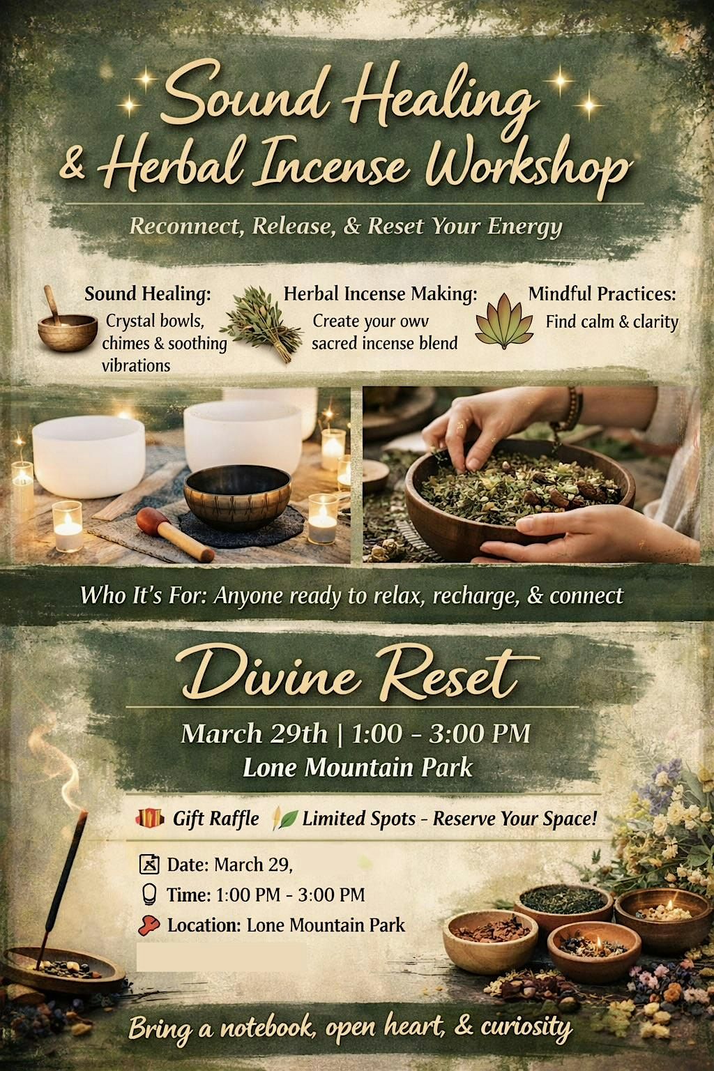 Step into a sensory journey of self-discovery and intention setting. In this workshop, you’ll learn how to create your own personalized incense blends using herbs, resins, and essential oils. Each participant will craft incense that aligns with their goals, emotions, or spiritual practice. We’ll explore the meanings and energies of different ingredients, and guide you through setting intentions as you make your blends. Leave with your custom incense and the knowledge to continue crafting at home.