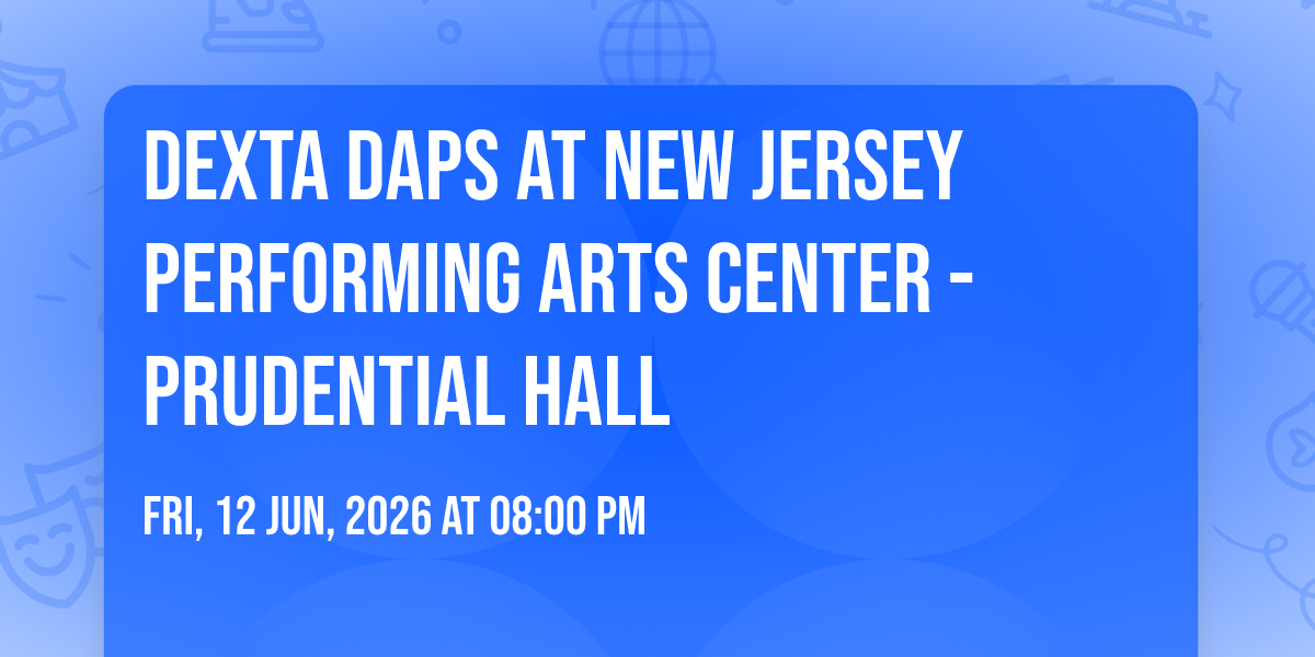 π Welcome to Dexta Daps at New Jersey Performing Arts Center - Prudential Hall, where the impossible becomes possible and dreams take flight! ποΈ Join us at New Jersey Performing Arts Center - Prudential Hall in the heart of Newark, NJ for an event that will redefine your expectations. π On June 12th, 2026 at 08:00 PM, witness the transformation of space and time into something truly magical. β¨ It's a curated experience combining the best of innovation, entertainment, and community spirit, creating moments that will be remembered for years to come. Whether you're a first-time visitor or a seasoned enthusiast, prepare to be amazed. π Book now to ensure your place in this unforgettable experience!