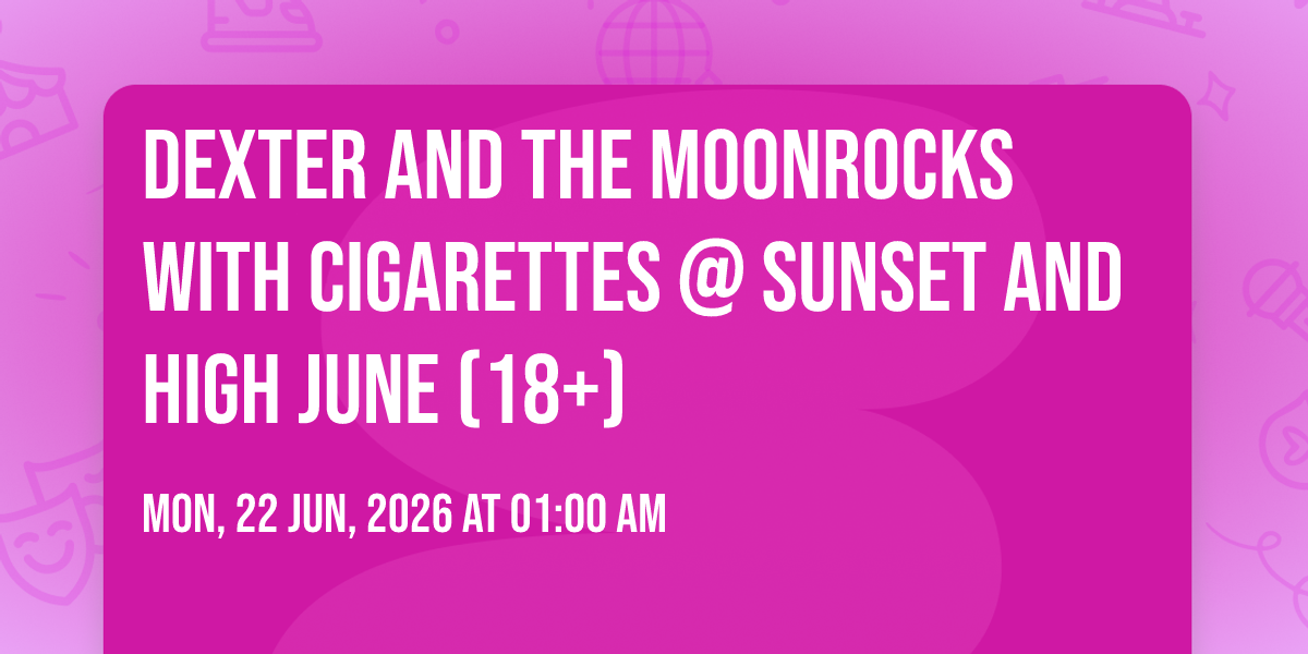 π Location: 44.9817, -93.2722β¨ Discover the extraordinary at Dexter and The Moonrocks with Cigarettes @ Sunset and High June (18+), where magic meets reality in ways you've never imagined! ποΈ Set in Fine Line Music Cafe nestled in bustling Minneapolis, MN, this event promises to be a landmark occasion. π Taking place on June 22nd, 2026 at 01:00 AM, it's going to create an atmosphere where every moment becomes a cherished memory. π Immerse yourself in an experience crafted with attention to every detail, designed to surprise and delight at every turn. They have worked tirelessly to ensure this event exceeds all expectations, bringing together elements of entertainment, innovation, and pure joy. π Don't miss your chance to be part of this remarkable journey!