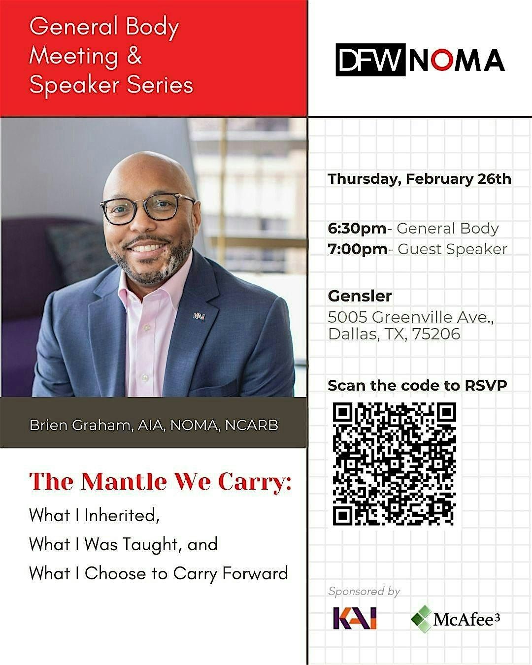 Don't miss out on this chance to be part of the conversation and make a difference. Join us at DFW NOMA's first General Body Meeting & Speaker Series of 2026!