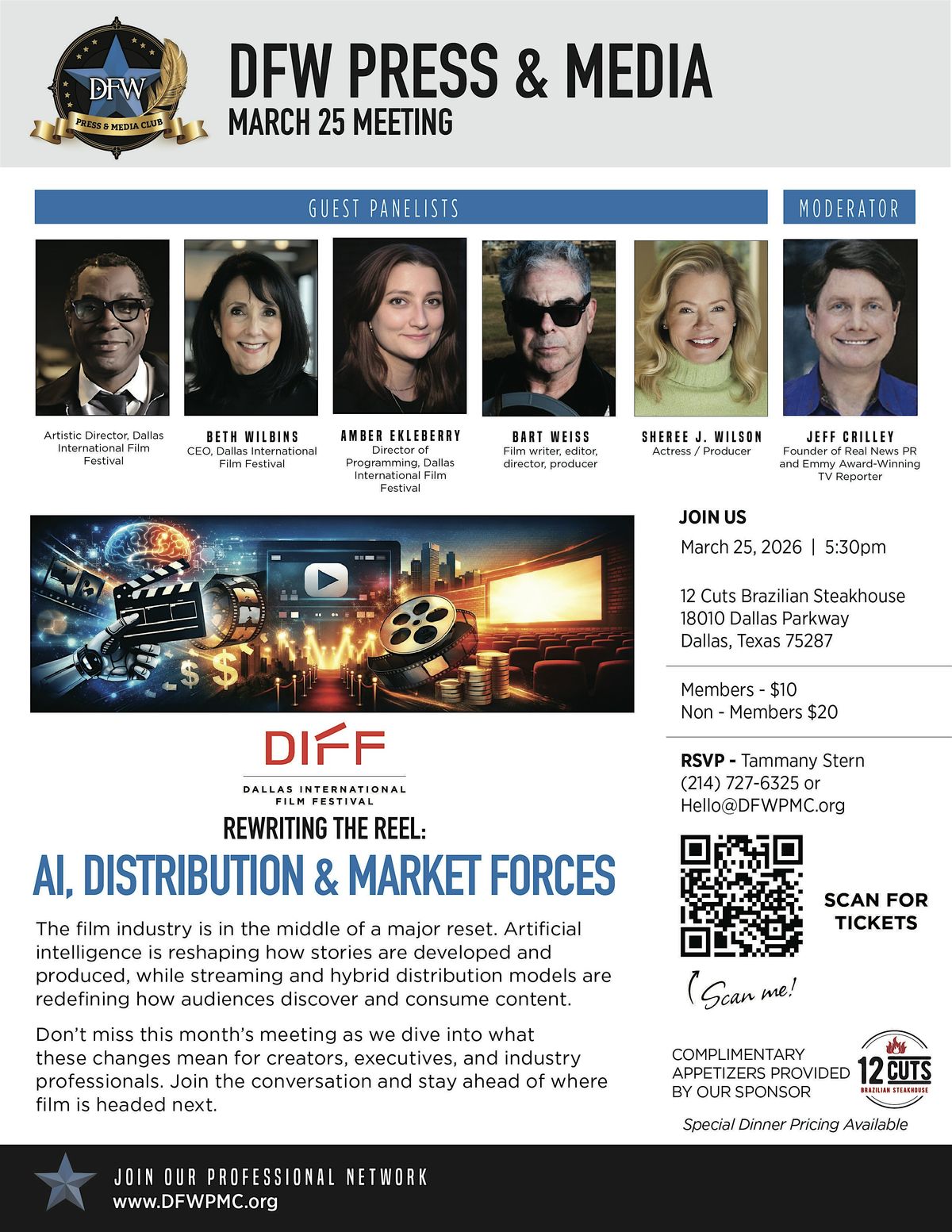 DFW Press & Media invites you to an essential conversation with the visionaries shaping the future of film in North Texas and beyond. We have assembled key leaders from the Dallas International Film Festival and acclaimed industry creatives to pull back the curtain on today's evolving cinematic landscape. They will share firsthand insights on how AI tools are influencing storytelling, what shifting distribution models mean for independent films, and how market forces are rewriting the rules of production and exhibition.