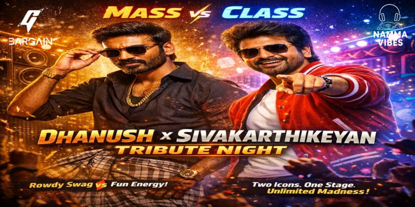 Experience the ultimate clash of styles β Rowdy Swag vs Fun Energy β as we spin back-to-back hits of Dhanush and Sivakarthikeyan all night long.