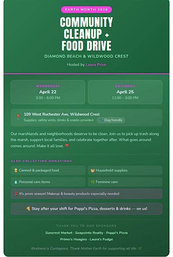 Diamond Beach & Wildwood Crest Cleanup + Food Drive